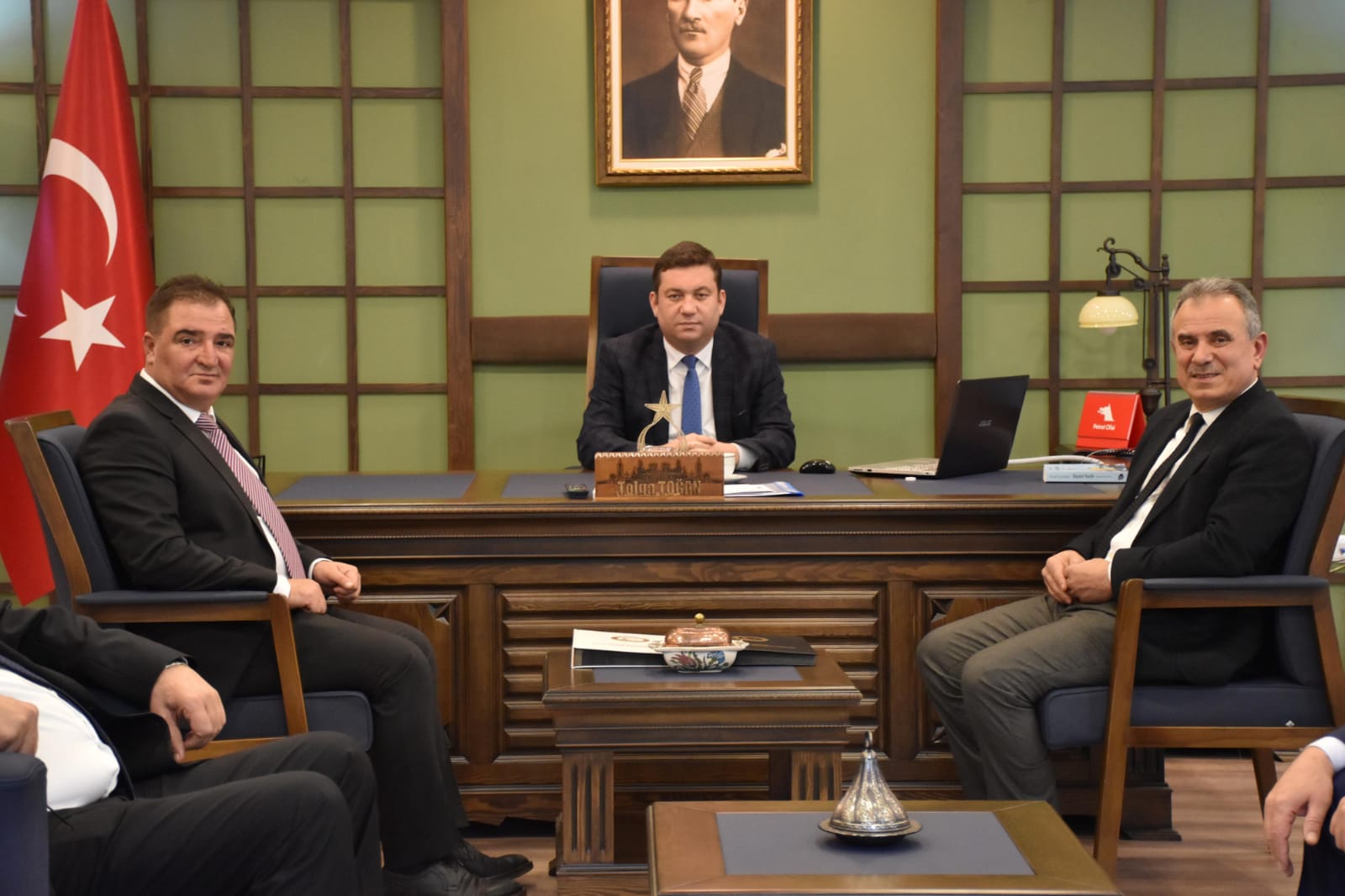 Meclis Başkanı Sebahattin Arslantürk, Yönetim Kurulu Başkanı Eyyüp Ergan, Meclis Başkan Yardımcısı Nevzat Özer, Yönetim Kurulu Üyeleri Ali Zeytin ve Celil Karabinaoğlu ile Genel Sekreter Nazlı Genç Ortahisar Kaymakamı Tolga Toğan’a ‘hayırlı olsun’ ziyaretinde bulundu.