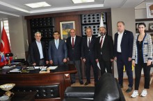 Meclis Başkanımız Nevzat Özer, Yönetim Kurulu Başkanımız Eyyüp Ergan, Meclis Başkan Yardımcımız Yılmaz Karadeniz, Meclis Üyeleri Yavuz Selim Çakıroğlu, Enver İskenderoğlu ve Oğuz Tuna Berber ile Genel Sekreterimiz Nazlı Genç Beşikdüzü Belediye Başkanı Burhan Cahit Erdem ve Vakfıkebir Belediye Başkanı Fuat Koçal’ı makamında ziyaret ederek, hayırlı olsun dileklerini ilettiler, çeşitli konularda görüş alışverişinde bulundular.