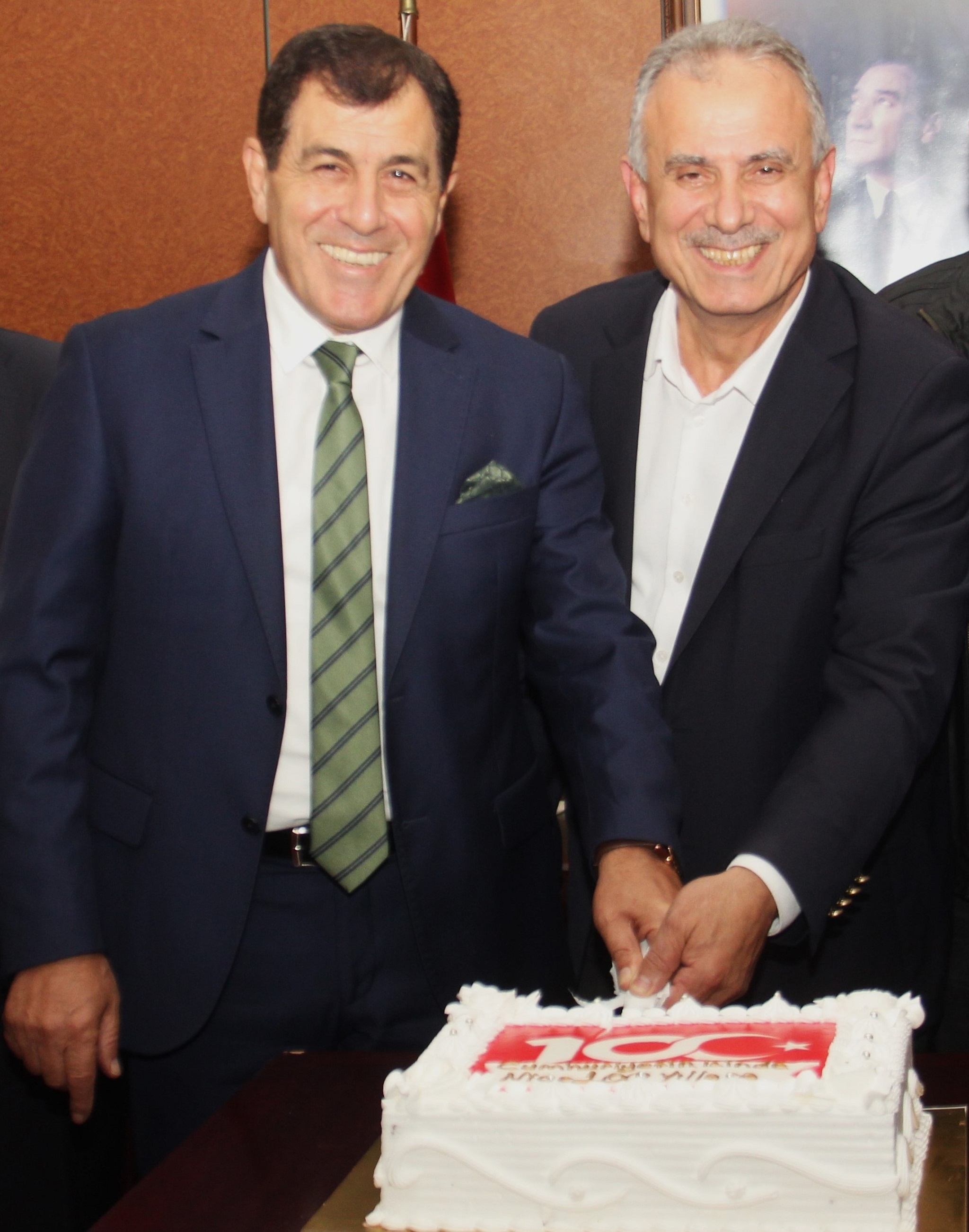 Meclis üyelerinin de yaptıkları konuşmalardan sonra borsa çalışanları ile birlikte üzerine “Cumhuriyetin izinde nice 100 yıllara” yazılı pasta kesildi.