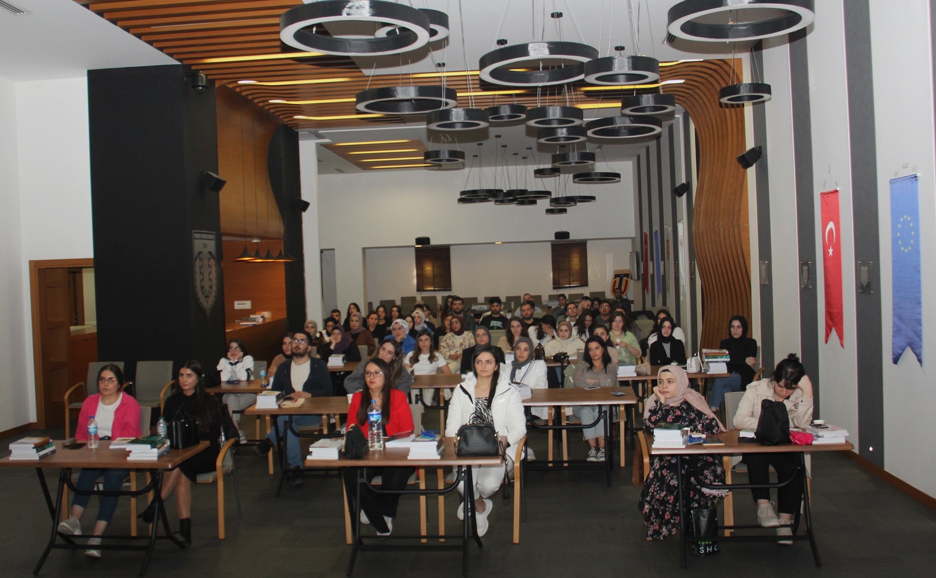 Daha sonra KTÜ Öğretim Görevlisi İslam Yıldız ve Gülsüm Merve Boyracı kursiyerlere ilk ders olarak Genetiği Değiştirilmiş Organizmalar (GDO) ve Hijyen konuları üzerinde bilgiler verdiler.