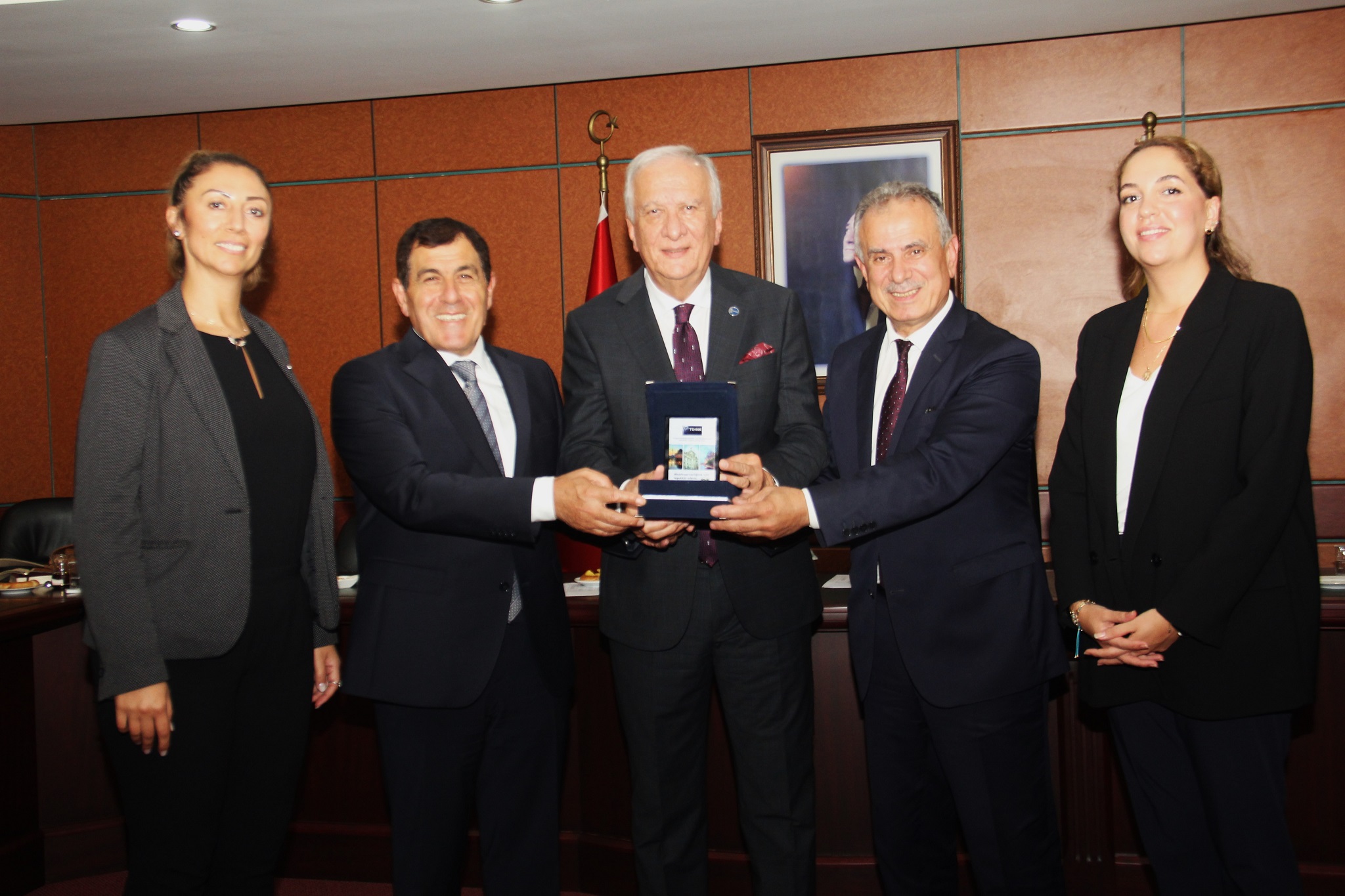 Toplantının sonunda Başkanlarımız Özer ve Ergan ile Genel Sekreter Özoğlu günün anısına karşılıklı hediye takdiminde bulundular.