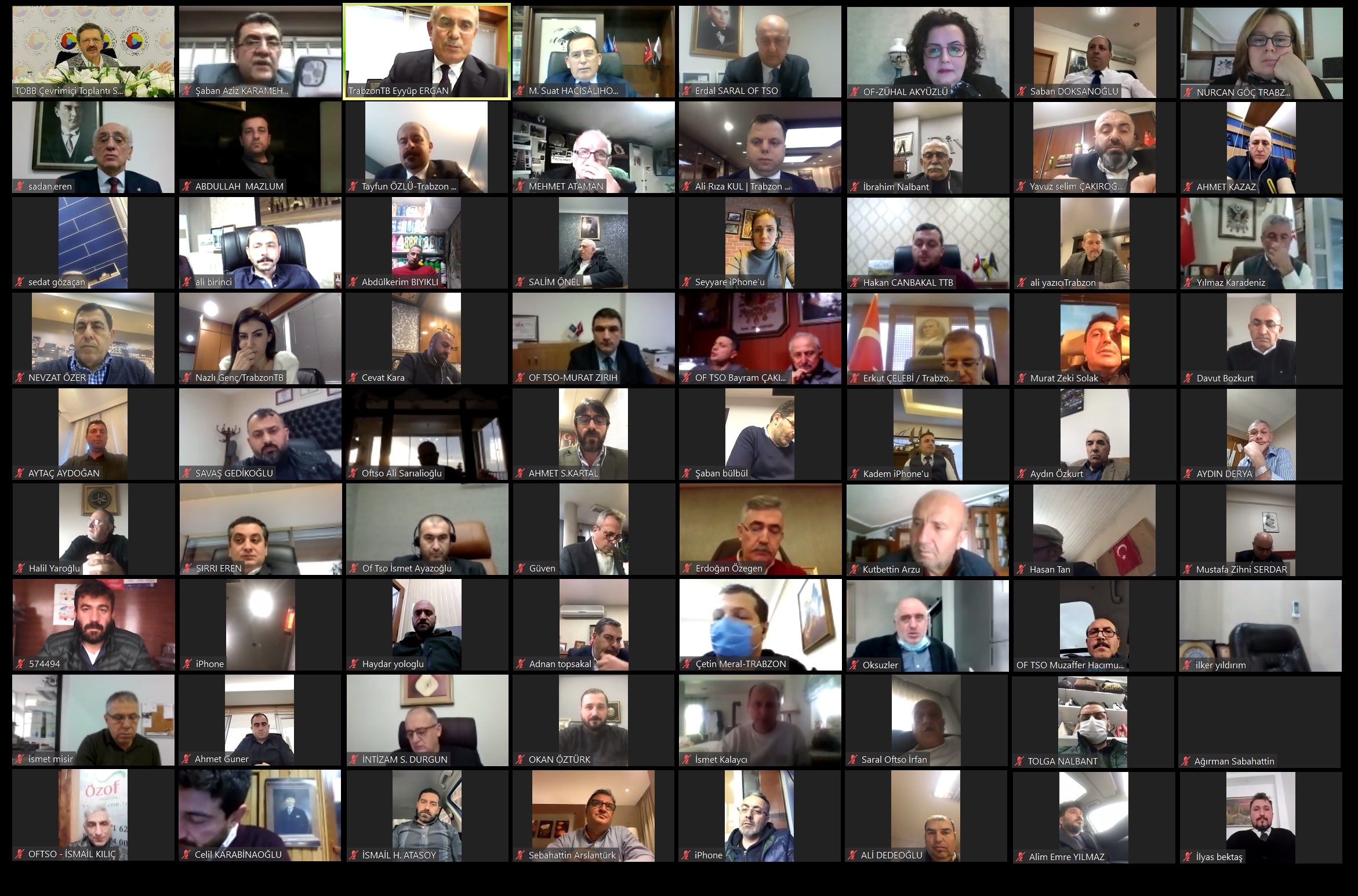 Video konferans sistemi ile yapılan ve Trabzon Ticaret Borsası Yönetim Kurulu Başkanı Eyyüp Ergan’ın moderatörlüğünde gerçekleştirilen toplantıda, Trabzon ve ülkenin genel problemleri üzerinde durulup, katılımcıların çözüm önerileri alındı. Özellikle pandemi sürecinde yaşanan sorunlar istişare edilerek, ilgili kurumlara iletilmek üzere talep ve öneriler değerlendirildi.