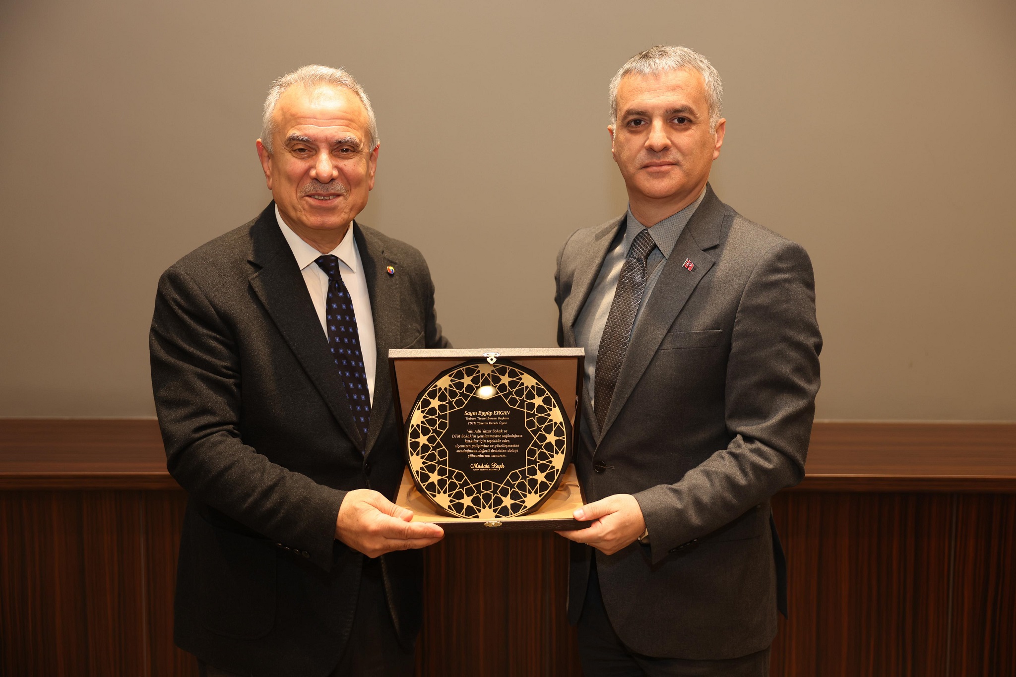 Toplantı öncesinde Yönetim Kurulu Başkanımız Eyyüp Ergan’a Yomra ilçesi Kaşüstü Mahallesi’nde bulunan Vali Adil Yazar Sokak ile Dünya Ticaret Merkezi Sokak’ta gerçekleştirilen yenileme çalışmalarına sağlanan katkılar nedeniyle Yomra Belediye Başkanı Mustafa Bıyık tarafından teşekkür plaketi takdim edildi.