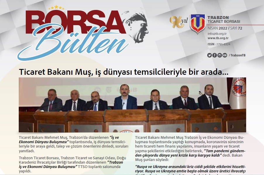 Basın Yayın ve Halkla İlişkiler Birimimiz tarafından hazırlanan ve borsamızın web sayfası www.tb.org.tr adresinde de yayımlanan e-bültende, borsanın çalışmaları ve faaliyetleri, borsada işlem gören ürünlerin istatistiki bilgileri, aylık fındık ihracatı, fındık tarım takvimi, ilgili bilgilendirmeler ve ayın yorumu yer alıyor.