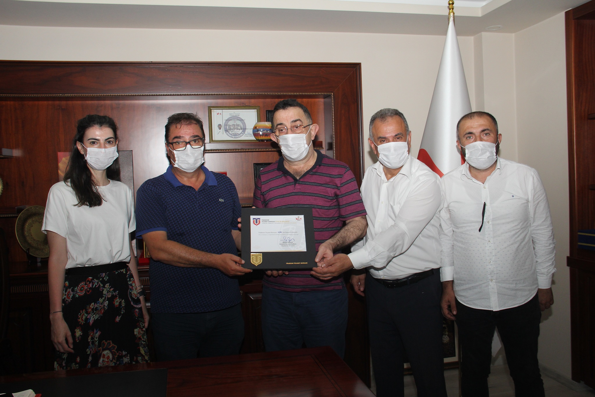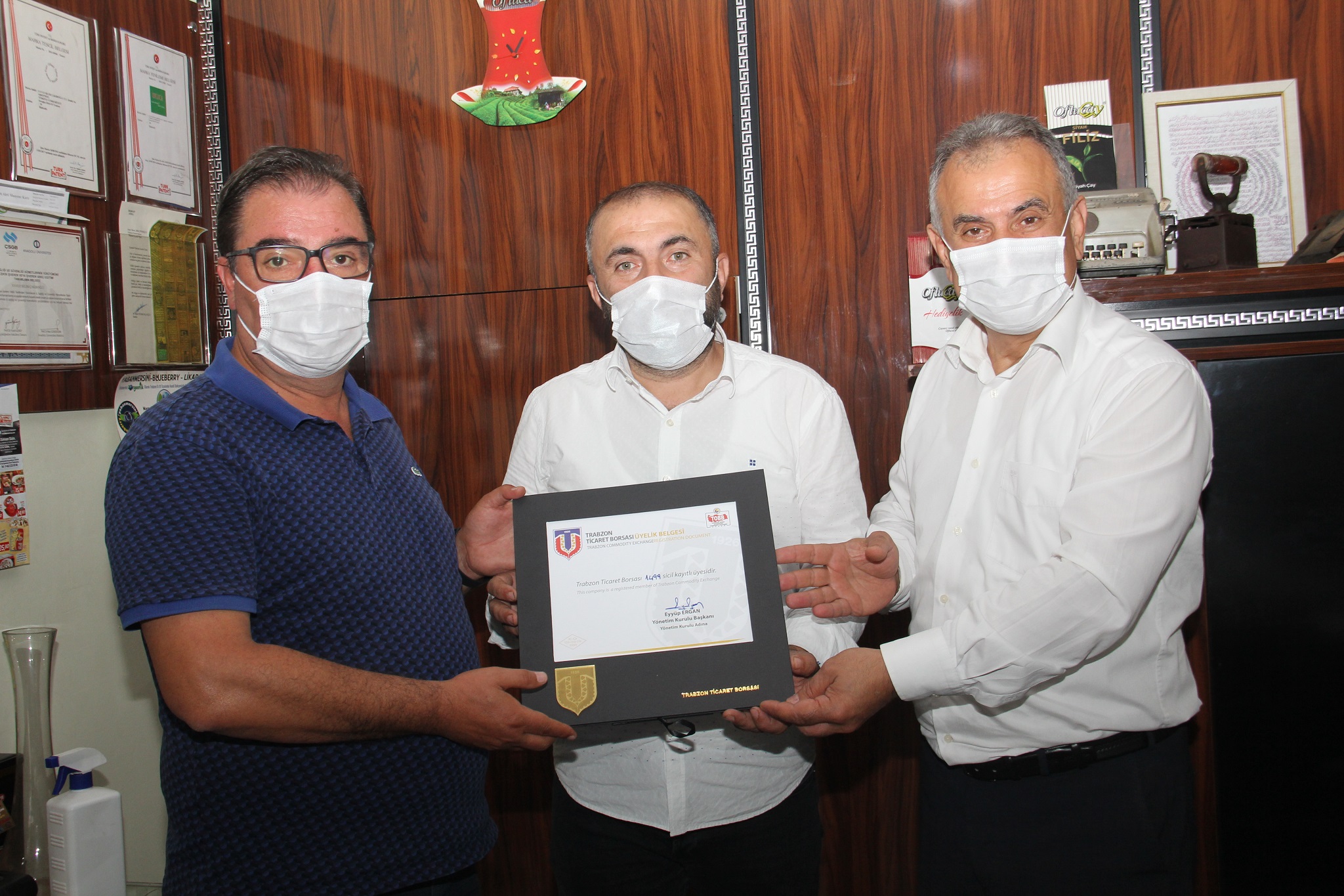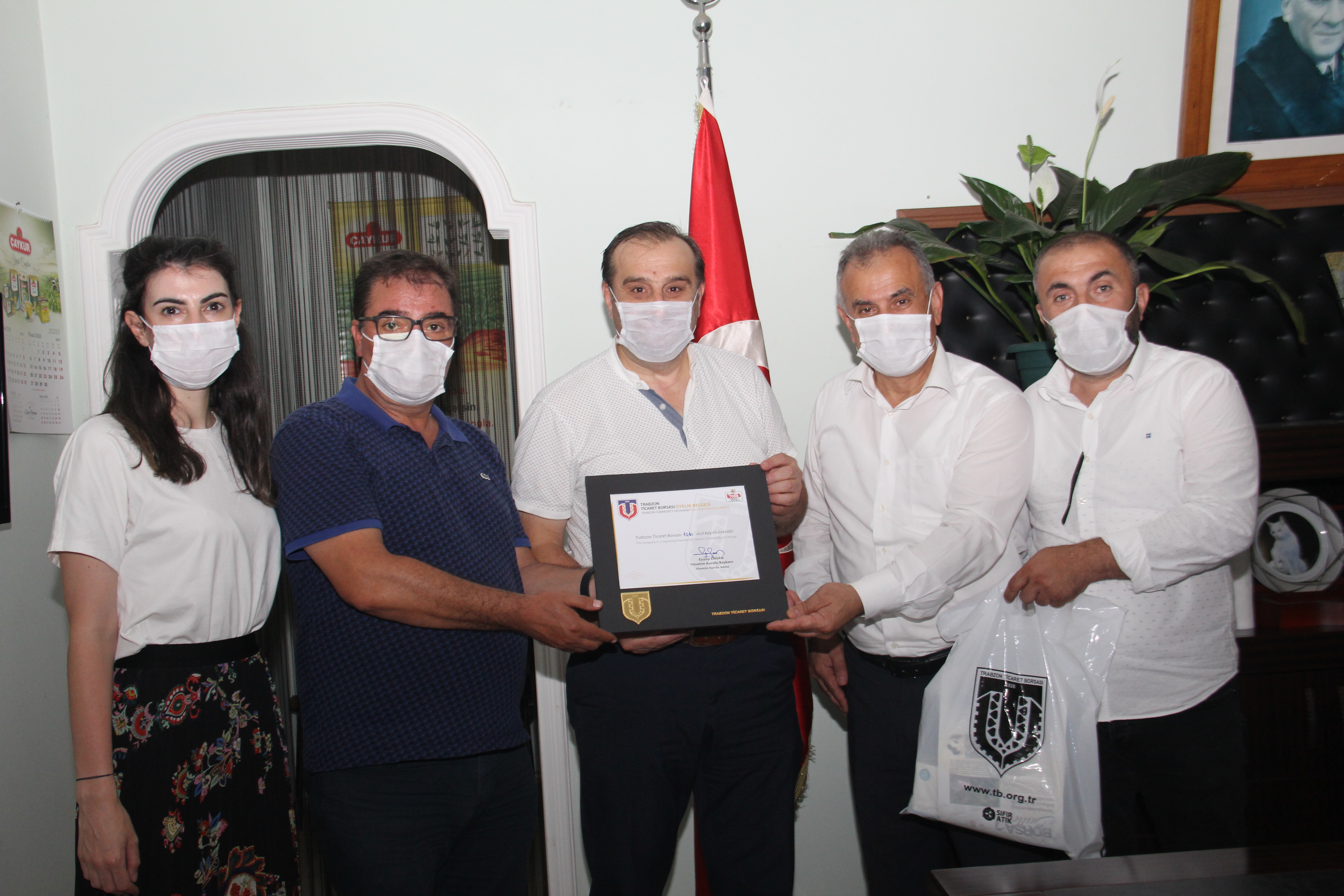 Ziyaretlerde işletmelere borsa üyeliği belgeleri takdim edildi. Pandemi nedeniyle de maske ve kolonya hediye edildi.