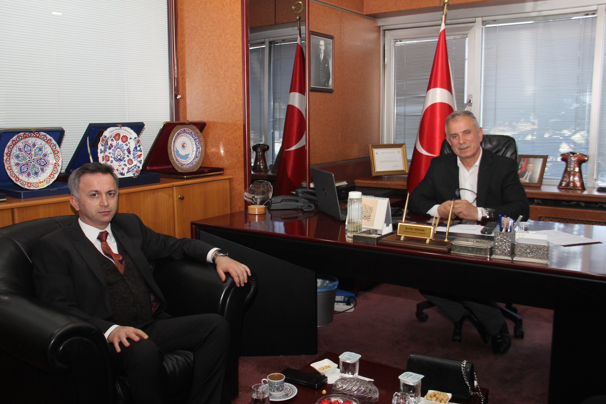 Başkan Ergan nazik ziyaretten ötürü Vakıf yöneticilerine teşekkür etti, çalışmalarında başarılar diledi.